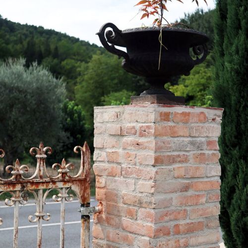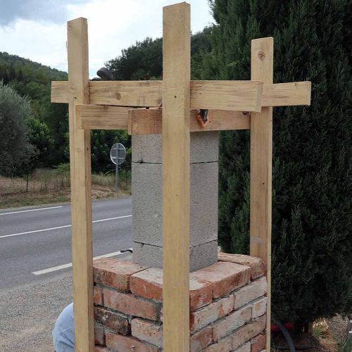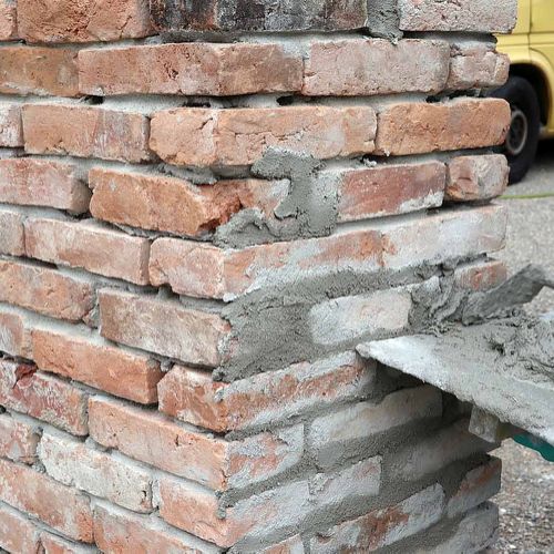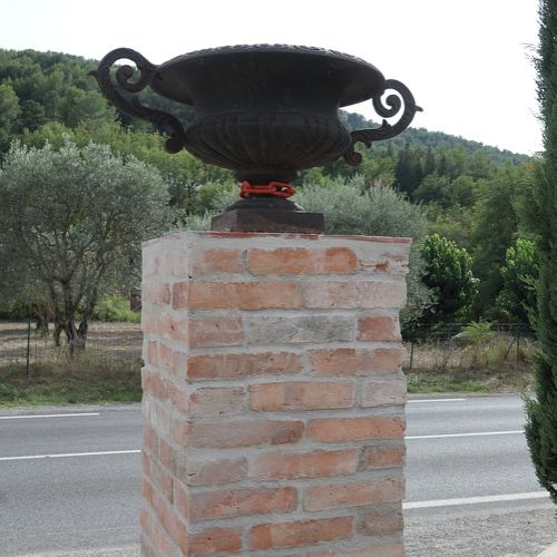 Réalisation de piliers en briques anciennes, avec coulage ultérieur d'un mortier en béton à coeur, ou simplement appareillées autour d'un boisseau existant (ici)