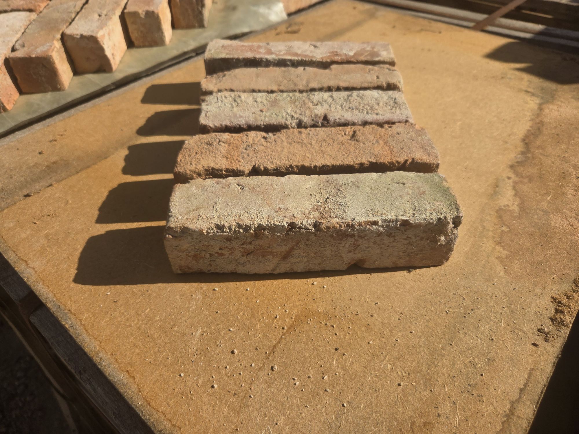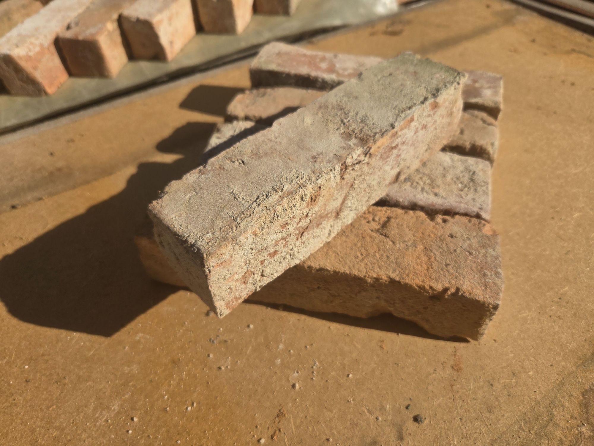Briques anciennes de récupération coupées en 2 dans leur largeur